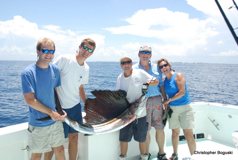 Kite Fishing can be the best method to target; Sailfish, Sharks, Dolphin (Mahi Mahi), Kings, Tuna & all sorts of other Game Fish. The kite fishing method is so effective that we have even on occasion caught Groupers and Amberjacks on surface kite baits in over 100 foot of water. Yes, these bottom fish swam up more than 100 foot to attack a surface kite bait.